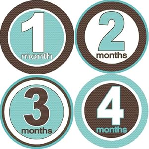 Product Description : These monthly stickers are a perfect way to catch a special moment in your baby's life without having to buy a new graphic bodysuit each time. Just peel the sticker and place on a shirt of your choice each month. Whip out the camera and snap away! Great gift for parents to capture monthly birthday photos! Remove after photo taking and before washing. Reuse sticker in memory books! This "Ziggy" design for boys features a simple zig zag pattern in blue and brown.