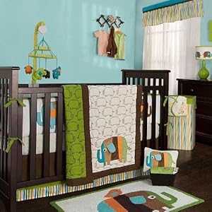 Product Description : The Zutano Elephant quilt is completely reversible and embroidered with a parade of chocolate stitched elephant silhouettes. The quilt features a large elephant appliqué with orange, lime, aqua, teal, chocolate and mocha fabrics and a dimensional peek-a-boo ear for baby to grasp! This is a wonderful burst of color and design to add to baby's room. Generously sized quilt at 36" x 45". Imported.