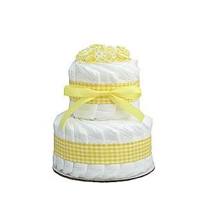 Product Description : Our Mini Yellow 2 Tier Diaper Cake, of course. Start with 30 Pampers diapers (size 1). Tie it up in a coordinating ribbon, add lots of love and enjoy. Dimensions: 8