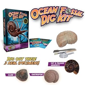 | 2013-02-20 20:13:15.98505-05 Category: Learning & Education  Excavate a sliced and polished ammonite, clam, and brachiopod fossil with this exciting hands-on dig kit Kit includes digging tool, brush and magnifying glass and is a great way to start a fossil collection Perfect gift for any kid aged 6-12 that is interested in earth science, geology, or paleontology The 12-page info guide is filled with cool science facts about ocean fossils and was written by teachers Activity booklet contains 10 wonderful puzzles and games for hours of extra fun and learning Read more... |