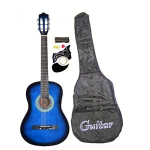 38" Inch Student Beginner Blue Acoustic Guitar with Carrying Case & Accessories & DirectlyCheap (TM) Translucent Blue ...