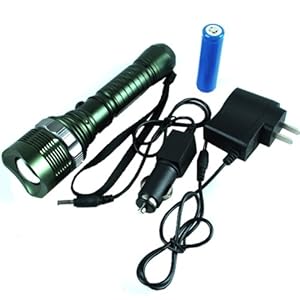 Super Bright 500 Lumens CREE XM-L Q5 LED Green Flashlight Torch Lamp Rechargeable Zoom IN /OUT Light & Car Charger & S...
